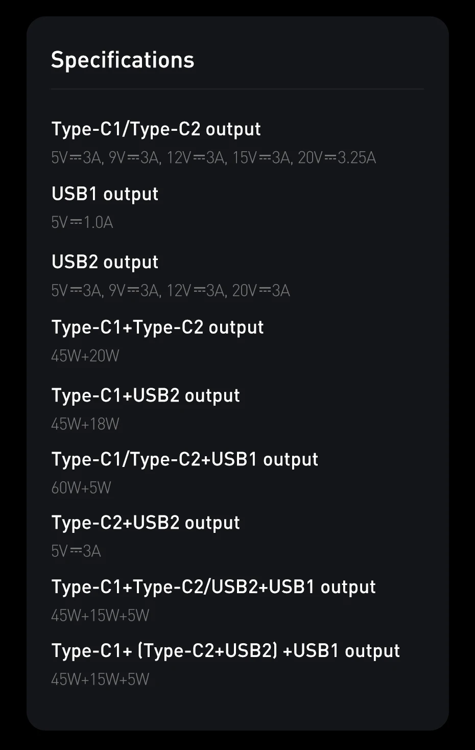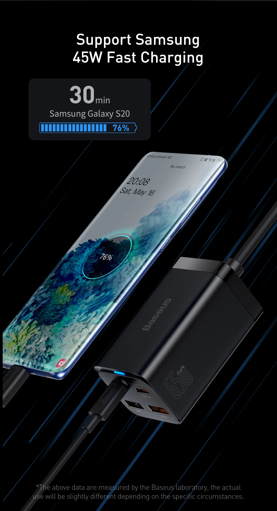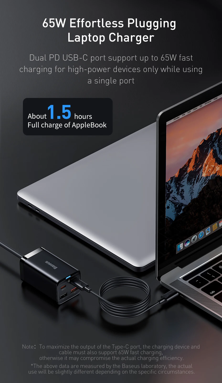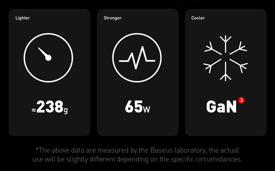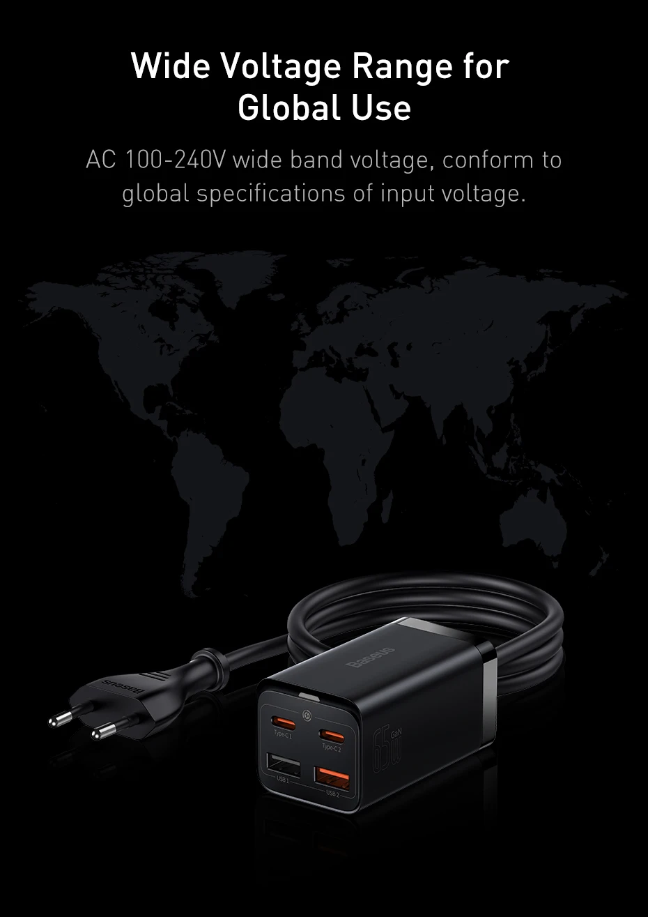 Spécifications techniques du chargeur de bureau Baseus GaN 65W