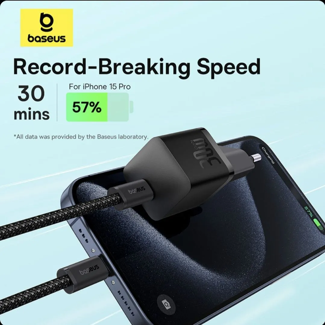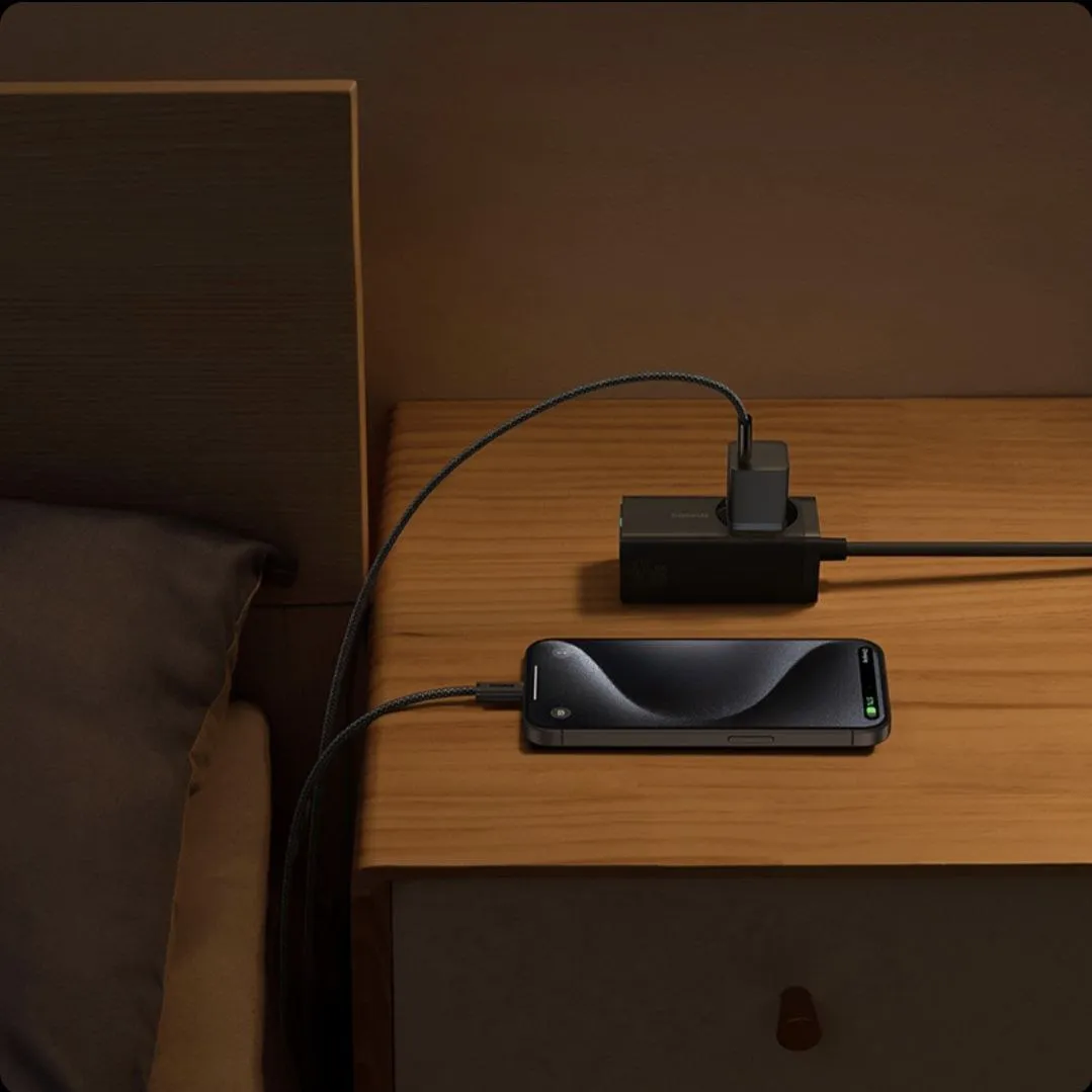 Le chargeur GaN Baseus représente l'avenir de la technologie de charge. L'utilisation du nitrure de gallium (GaN) de 5e génération a permis de créer un chargeur à la fois puissant et mini, ce qui facilite son transport. Cette technologie avancée assure une charge rapide tout en maintenant une basse température, protégeant ainsi la batterie de vos appareils et augmentant leur durée de vie. Le chargeur est optimisé pour les modèles Apple de la série 8 à 15, mais sa polyvalence est renforcée par le câble Type-C vers Type-C 100W inclus, capable de recharger des ordinateurs portables et d'autres appareils à haute puissance.