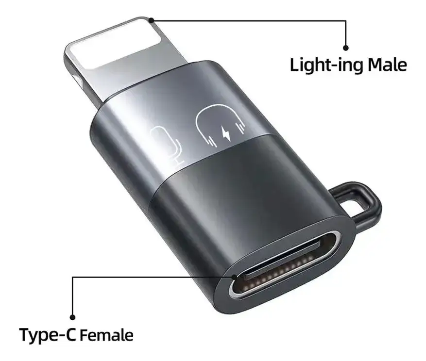 Adaptateur USB-C femelle OTG pour iPhone et iPad Lightning - Connexion simple et compacte - Changez la connectivité de votre appareil iOS grâce à cet adaptateur USB-C femelle vers Lightning OTG. Cet adaptateur est idéal pour tous ceux qui ont besoin d'un accessoire avec un connecteur USB-C sur leur iPhone ou iPad. Il offre une solution pratique et portable pour connecter des périphériques tels que des écouteurs, des microphones, des appareils photo, des clés USB, etc. Compact et fabriqué en aluminium durable, il est parfait pour ceux qui recherchent polyvalence et efficacité en toute sérénité. Caractéristiques et avantages : - Compatibilité OTG : Connectez facilement votre microphone, votre clé USB, votre clavier, votre souris et votre appareil photo à votre iPhone ou iPad. Connexion de données haut débit : Transférez rapidement des fichiers entre appareils grâce à la prise en charge complète de la fonction OTG (On-The-Go). - Matériau de haute qualité : Fabriqué en aluminium durable et résistant, il garantit une longue durée de vie et des performances stables. - Conception compacte et portable : Léger et facile à transporter, il se glisse dans n'importe quelle poche ou sac, idéal pour les personnes souvent en déplacement. - Compatible avec divers appareils iOS : Fonctionne avec les modèles d'iPhone 5 à 13 et divers modèles d'iPad. Avantages : - Haute performance et durabilité : Fabriqué en aluminium, cet adaptateur allie robustesse et légèreté, permettant une utilisation continue sans usure. - Polyvalence : Connectez divers appareils USB-C à votre iPhone/iPad. Compatibilité garantie : Compatible avec les dernières versions d'iOS, notamment iOS 14, 15 et versions ultérieures. - Économique et performant : Cette solution économique étend les fonctionnalités de votre iPhone/iPad sans adaptateurs encombrants et complexes. - Rapport qualité-prix optimal : À un prix abordable, bénéficiez d'une solution de connexion complète et performante pour vos soirées, sans équipement coûteux ni compliqué. Cet adaptateur OTG, de haute qualité et polyvalent, représente un excellent investissement pour une utilisation quotidienne plus pratique. Compatibilité : Cet adaptateur est compatible avec de nombreux appareils iOS, notamment : - iPhone 13 Pro Max, iPhone 12, iPhone 11, iPhone SE, iPhone X, iPhone 8 et autres modèles. - iPad Pro, iPad Air, iPad Mini (toutes générations). Spécifications techniques : - Modèle : Adaptateur USB-C femelle vers Lightning mâle - Matériau : Aluminium - Couleur : Noir et gris - Dimensions : 30 mm x 10 mm - Poids : 3 grammes - Connexion femelle : USB Type-C - Port mâle : Lightning pour iPhone/iPad - Compatibilité : iPhone 5 à iPhone 13, iPad de toutes générations (voir la liste complète ci-dessous) Contenu de l’emballage : 1 adaptateur USB-C OTG femelle vers Lightning mâle Garantie du vendeur : 30 jours