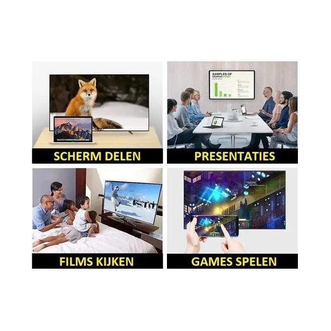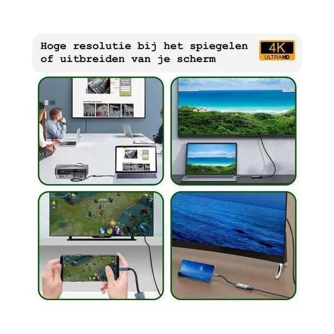 Transmission haute définition 4K Avec une prise en charge de la transmission vidéo jusqu'à 4K et une perte de signal minimale, cet adaptateur est votre choix idéal lorsque vous en avez assez d'un petit écran et que vous souhaitez passer au niveau supérieur et profiter d'une expérience visuelle sur grand écran. Il est donc votre allié le plus fiable, que vous soyez au bureau ou en déplacement pour des négociations commerciales.
