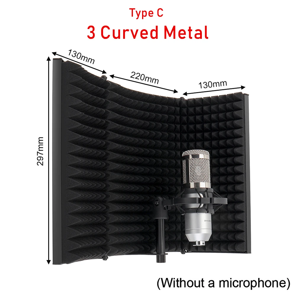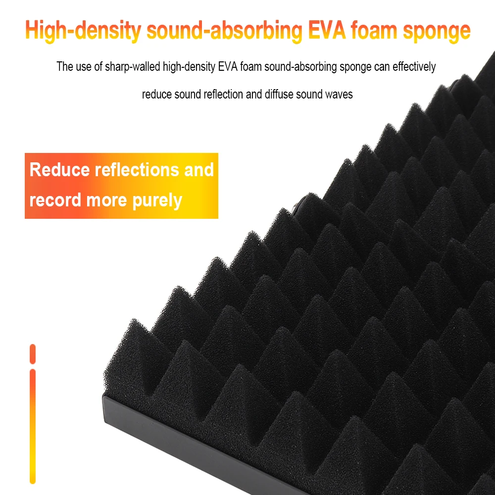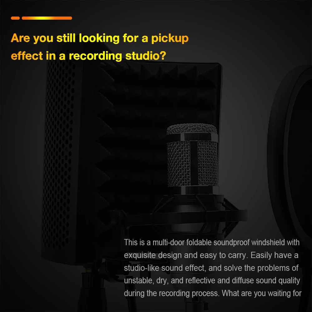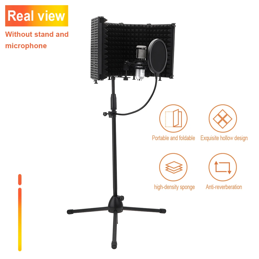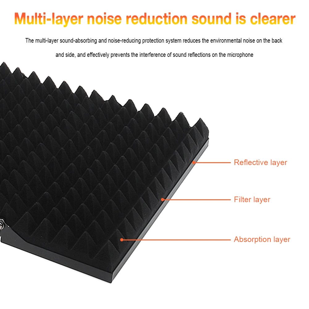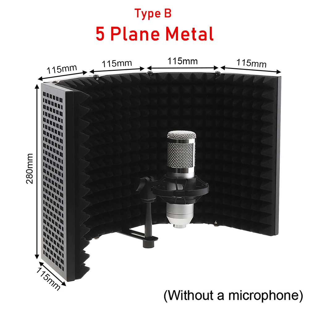 - microphone isolation shield is composed of five doors, and the inner side is made of absorbing cotton insulation that can reduce sound reflection when recording.Makes your vocal tracks that little bit clearer.