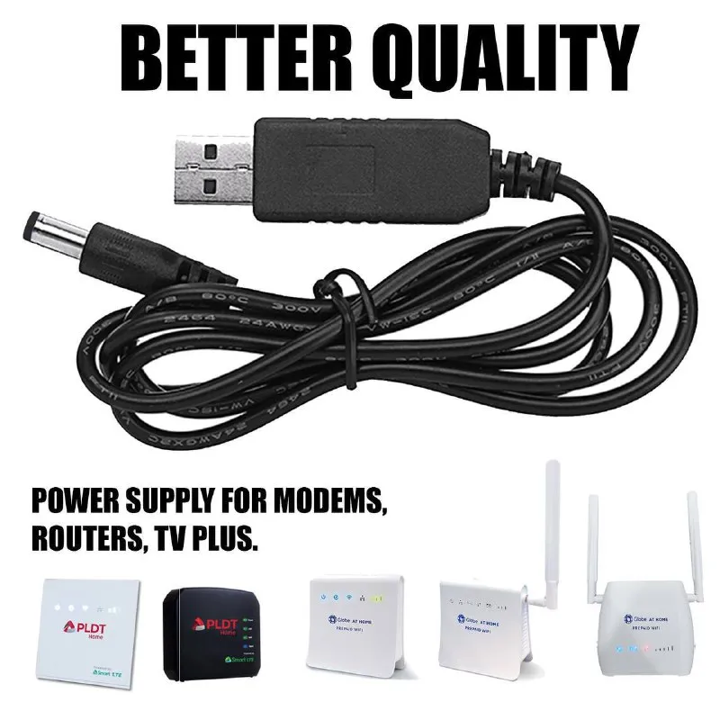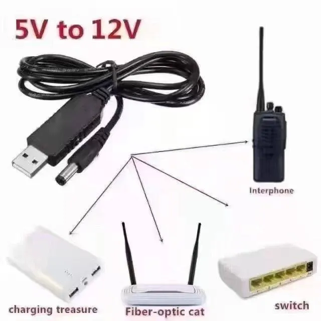 Câble USB DC 5V vers DC 9V 12V, câble d'alimentation USB vers 5V avec prise DC 5.5 x 2.1mm pour audio, routeur sans fil, haut-parleurs.