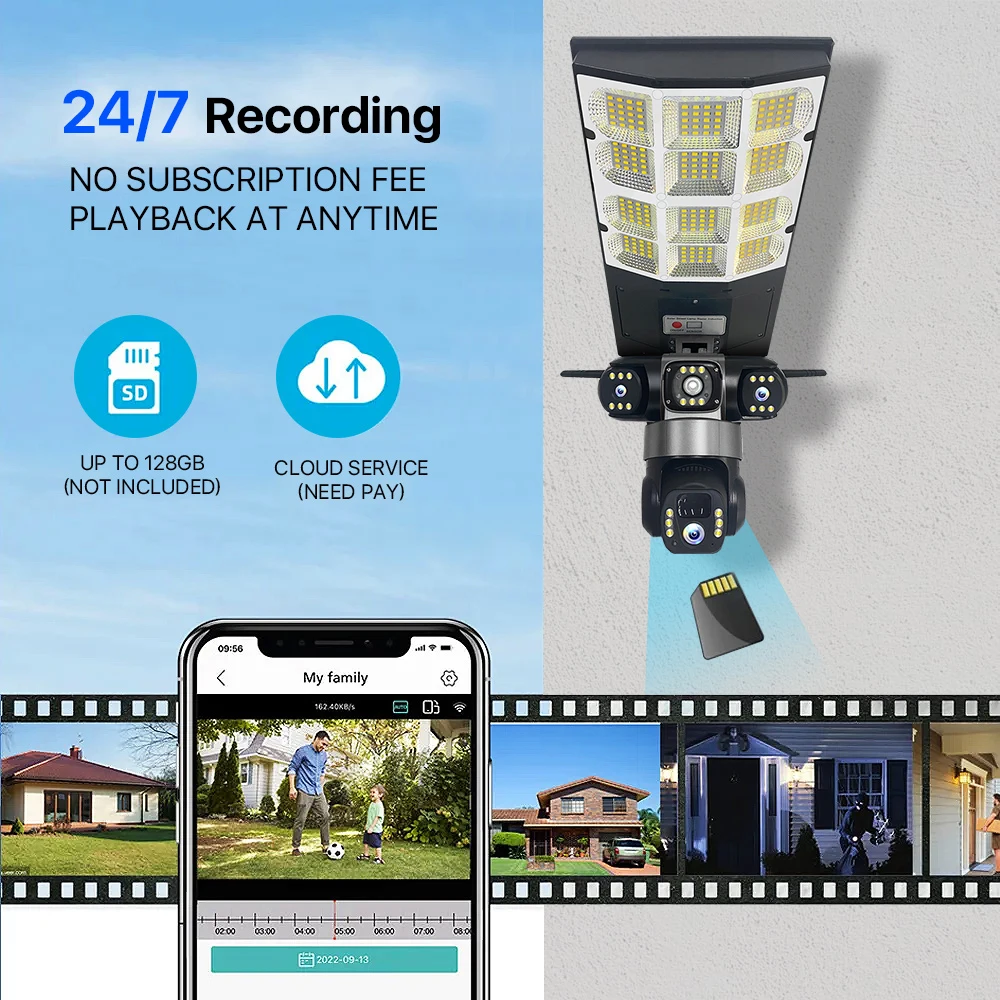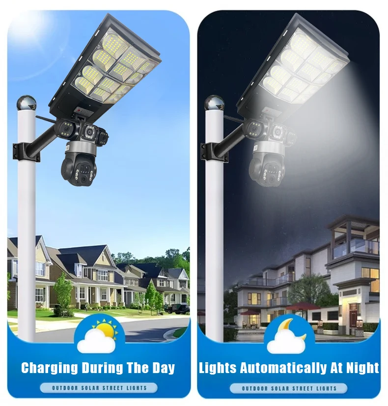 The camera and street lamp can be separated from the large-capacity battery. The solar panel on the top absorbs and converts it into energy, and absorbs heat as power.