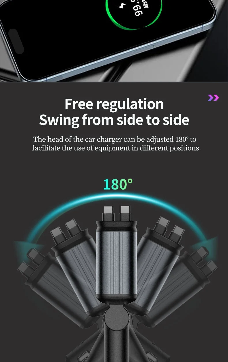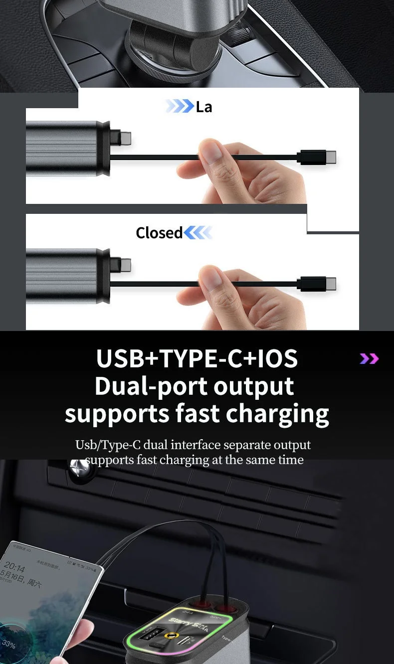 Portable 120W 4 en 1 chargeur de voiture rétractable ciel étoilé lumière ambiante charge rapide station de chargeur de téléphone de voiture adaptateur rapide