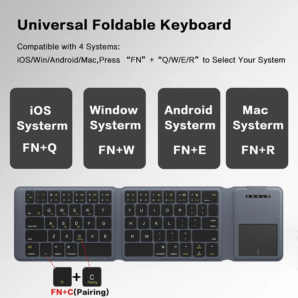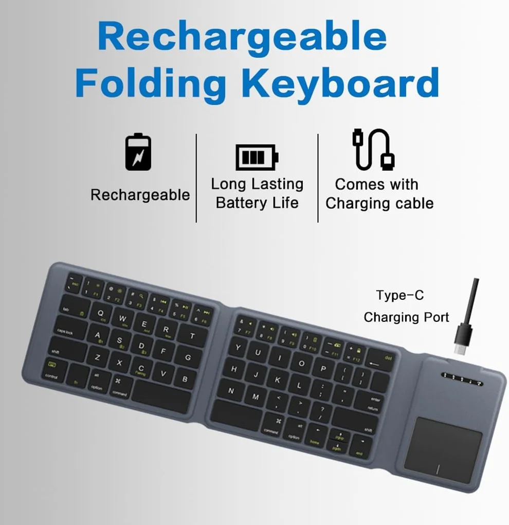Tri-Fold Design & Ultra-Thin?Compact and lightweight, this keyboard folds into a small size, making it easy to carry in your bag or pocket. Perfect for travel, work, or home use.