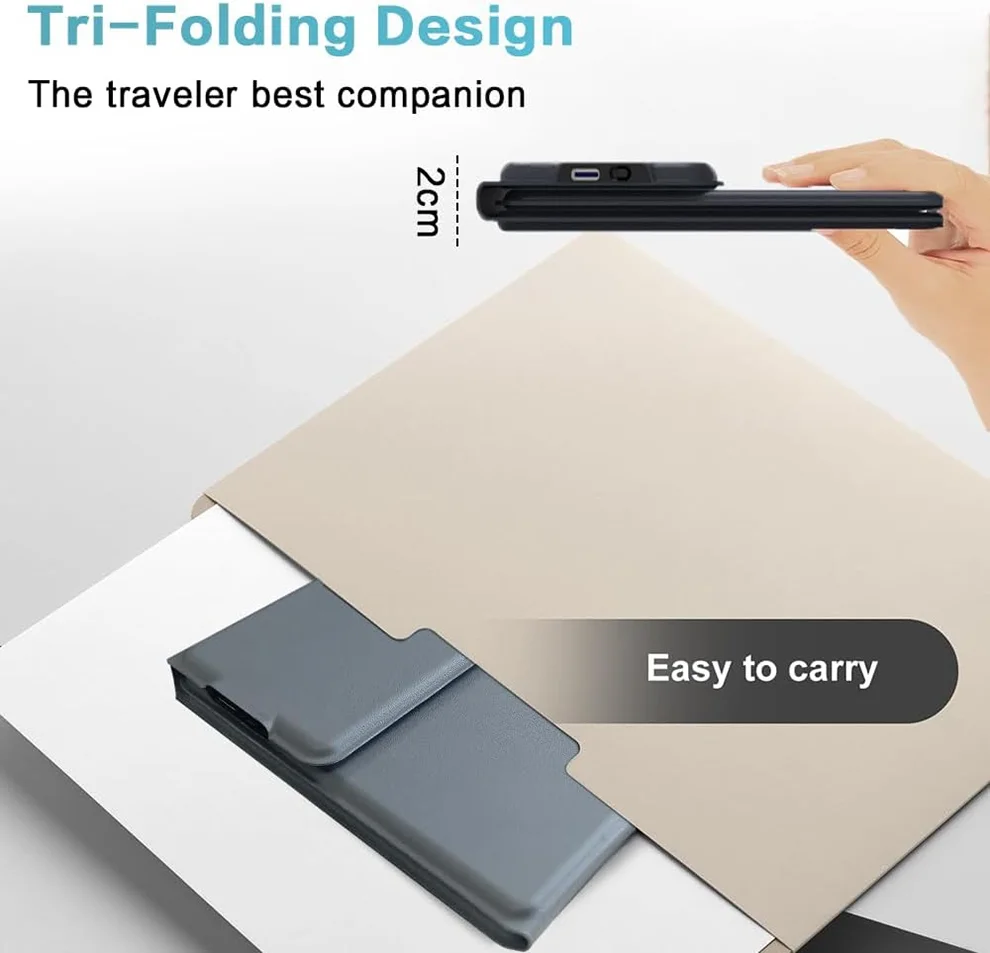 Ultra-Portable & Foldable Design Slim tri-fold case design, folds down to just 50mm thick and weighs only 183.5g—perfect for travel and on-the-go productivity.