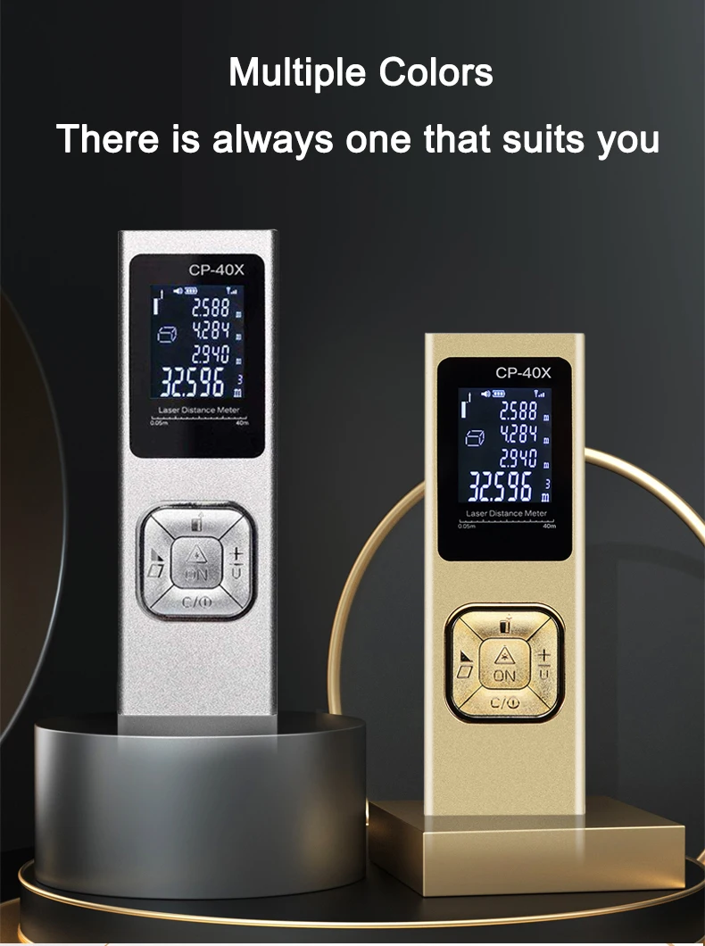 Multifonctionnel, il mesure avec précision, rapidité et facilité les distances, les surfaces et les volumes. Sa portée est de 40 m et sa précision de ± 1,5 mm. Il permet de basculer entre les unités mètres (m), pouces (in) et pieds (ft), facilitant ainsi la lecture des résultats. Sa surface renforcée est étanche à la poussière et à l'eau (IP54). Le grand écran VTN offre une excellente visibilité sous tous les angles grâce à ses chiffres rétroéclairés et son large angle de vision. Son format compact le rend facile à transporter. Notre produit est largement utilisé dans les domaines de la décoration intérieure, de l'architecture et du design d'intérieur. |