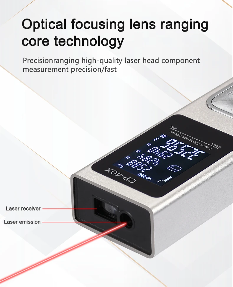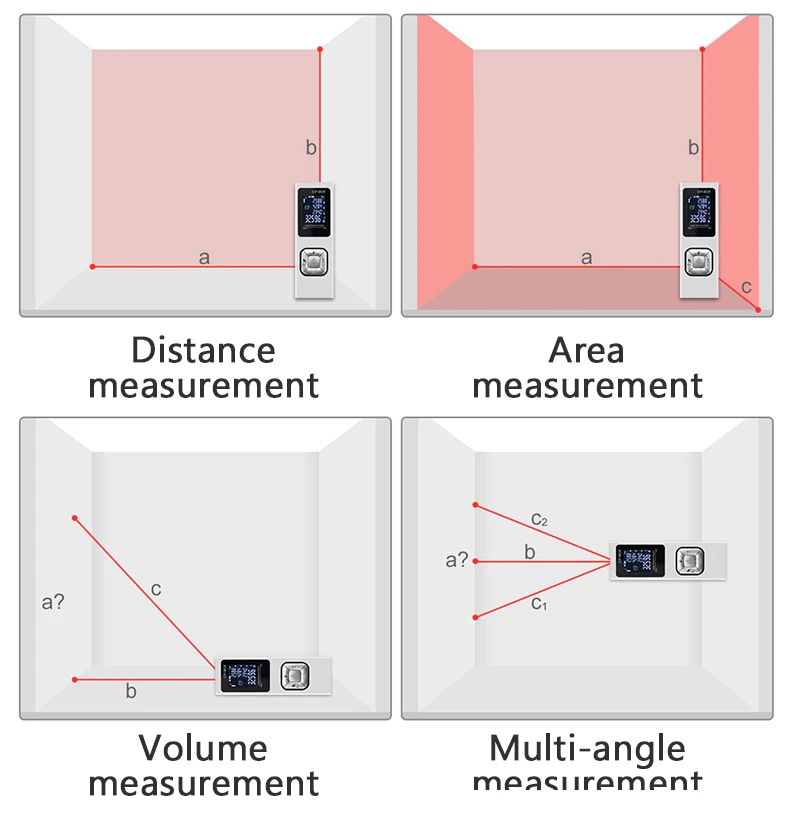 performances pour mesurer les distances, les surfaces et les volumes. Ce télémètre laser portable est largement utilisé en décoration intérieure,