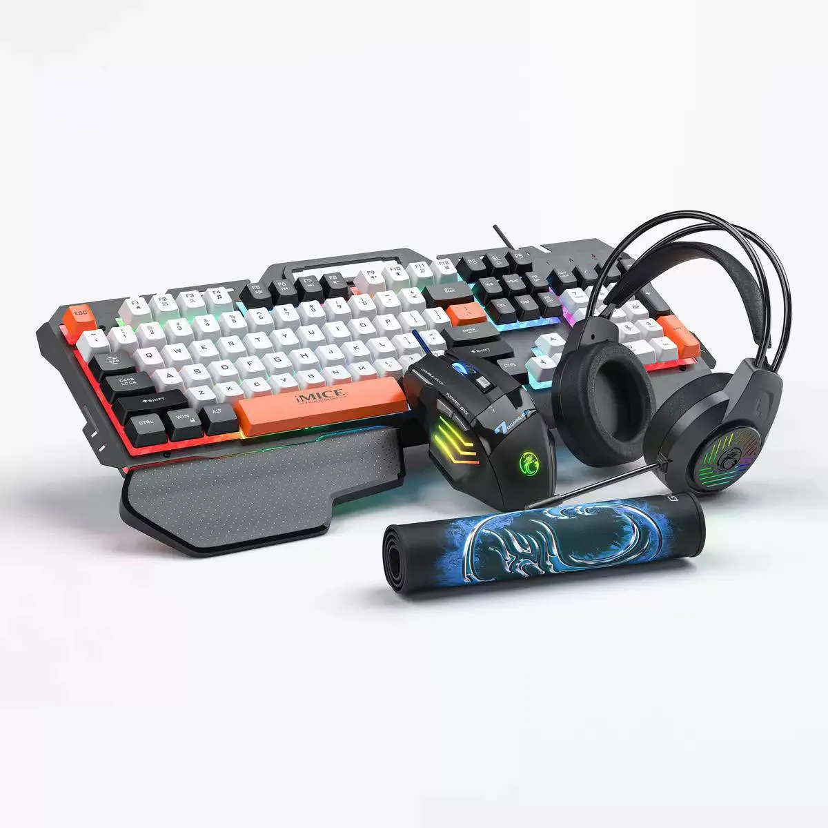 Plongez au cœur de l'action avec l'Ensemble Gaming iMICE GK-450 Pro 4-en-1 ! Conçu pour offrir une Expérience de Jeu Immersive, ce kit complet 4-en-1 inclut un clavier réactif, une souris de précision, un casque audio performant et un tapis de souris optimisé. Chaque périphérique iMICE GK-450 Pro est pensé pour l'ergonomie et la performance, garantissant une réactivité maximale et un style gaming unique. C'est la solution gaming essentielle pour tout joueur PC à la recherche de qualité et de coordination dans ses accessoires.