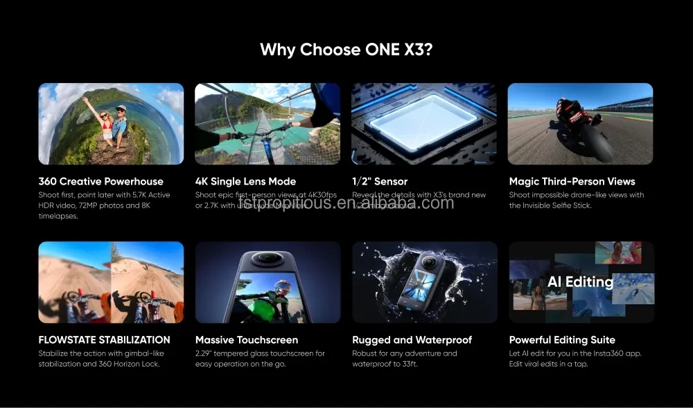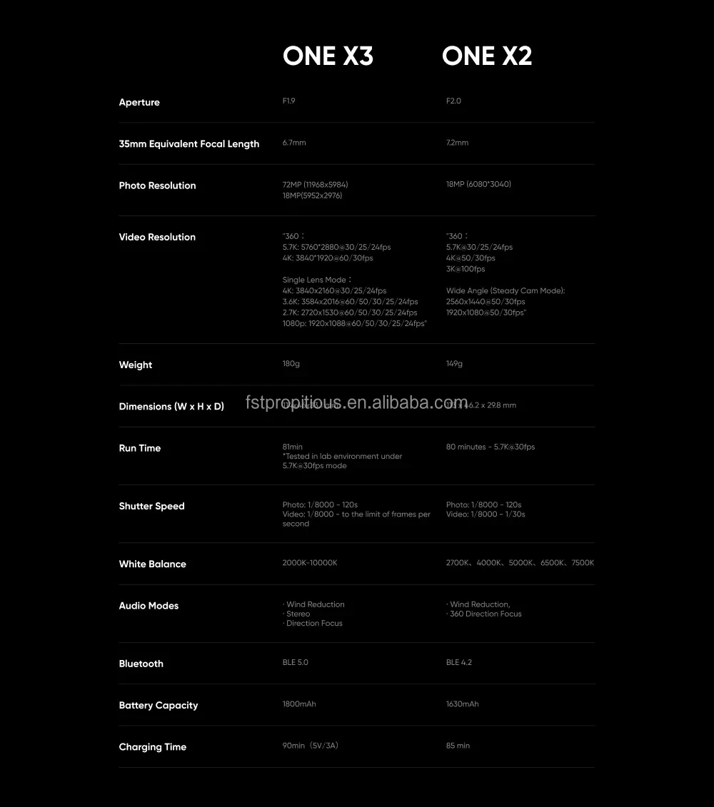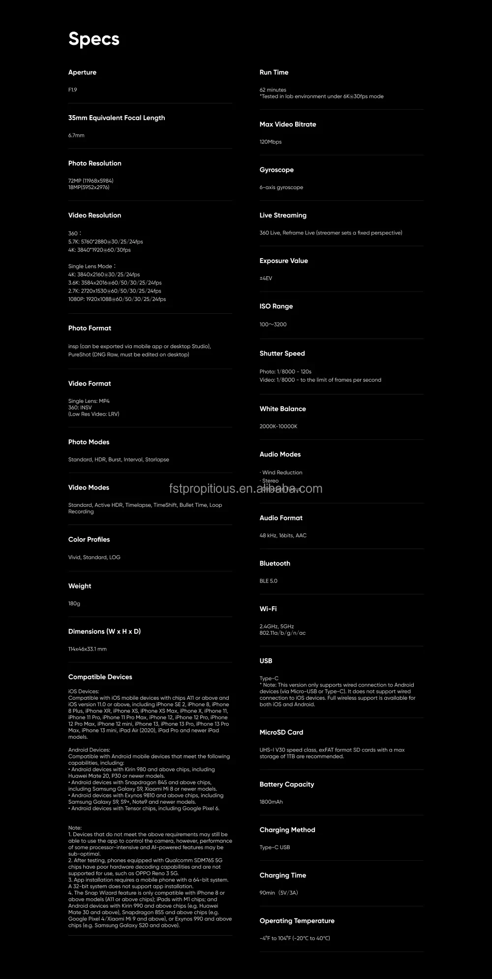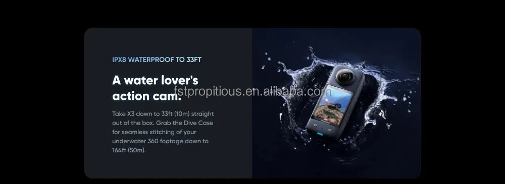 | Protection | Étanchéité : Jusqu'à 50M (avec boîtier) | Fonction cachée : Étanche (Waterproof) | Nom : Insta360 X3 |