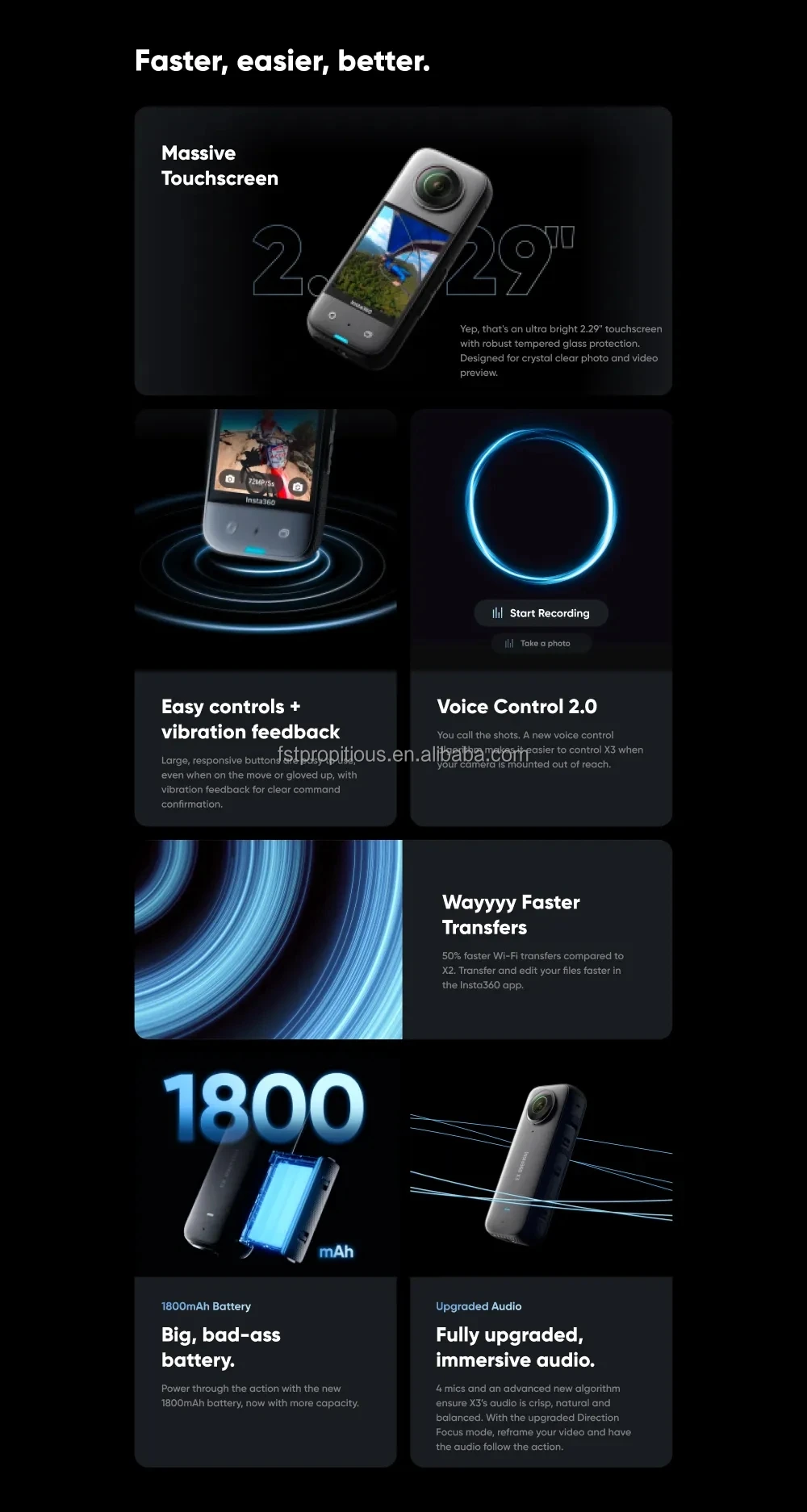| Identification | Marque : Insta360 | Wi-Fi : 2.4GHz, 5GHz (802.11ac) | Unité de vente : Article unique |