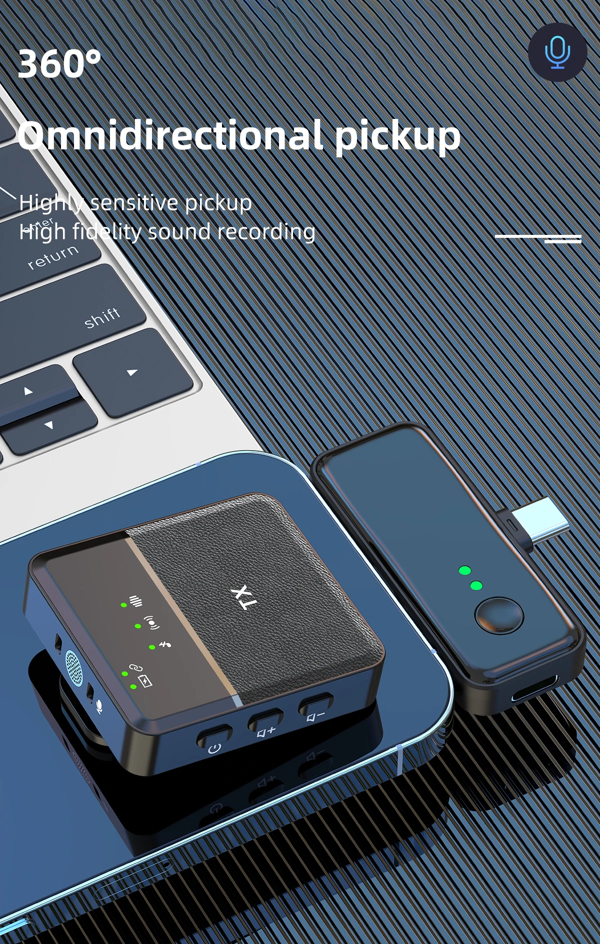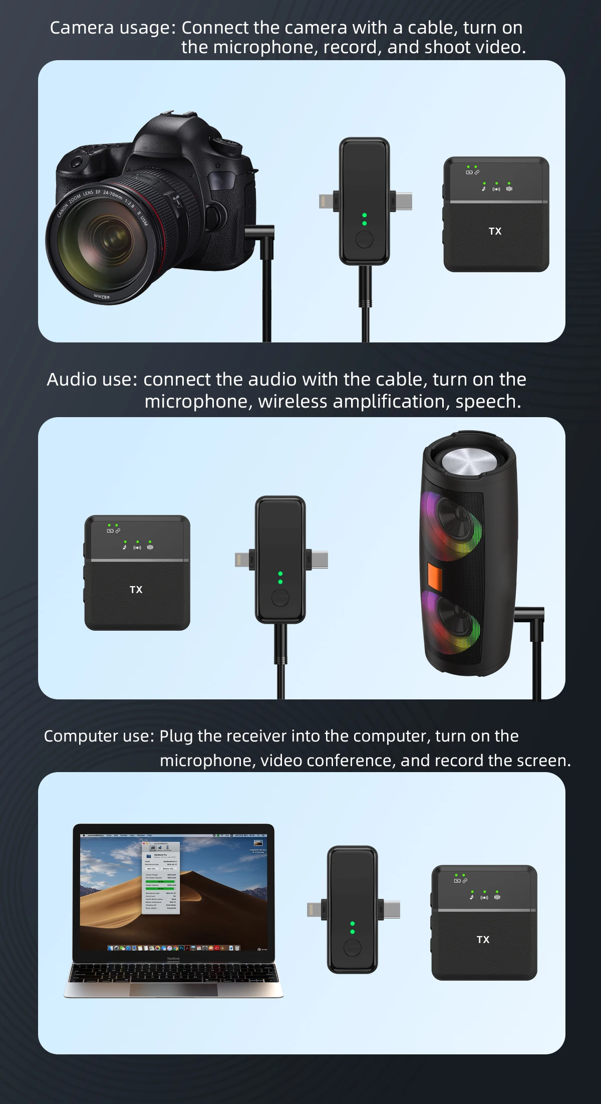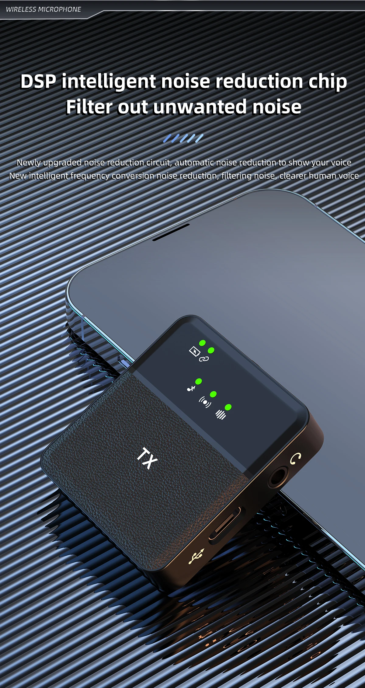 | Technologie | Type / Communication | Microphone lavalier sans fil | Wireless microphone haute liberté. |