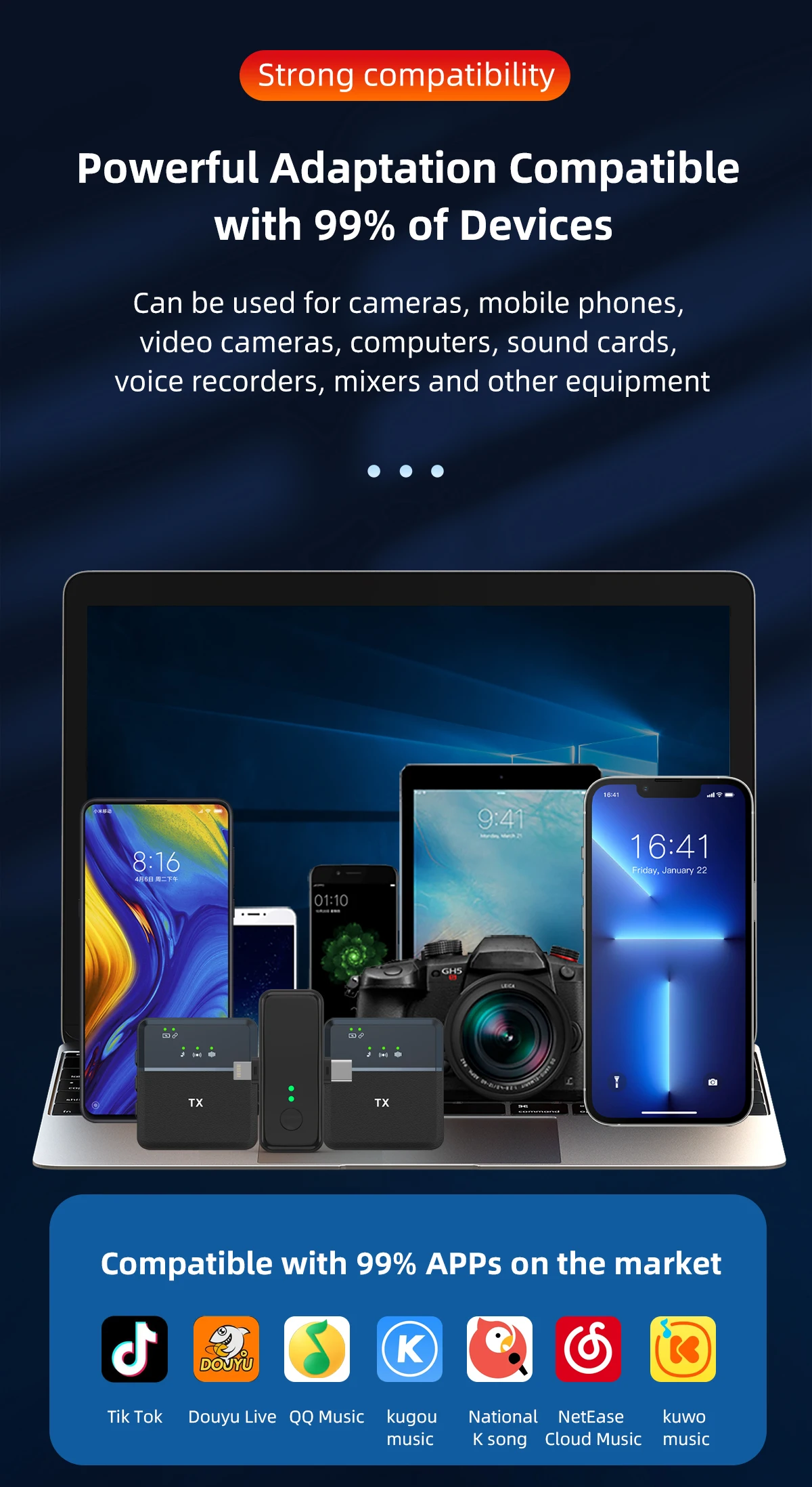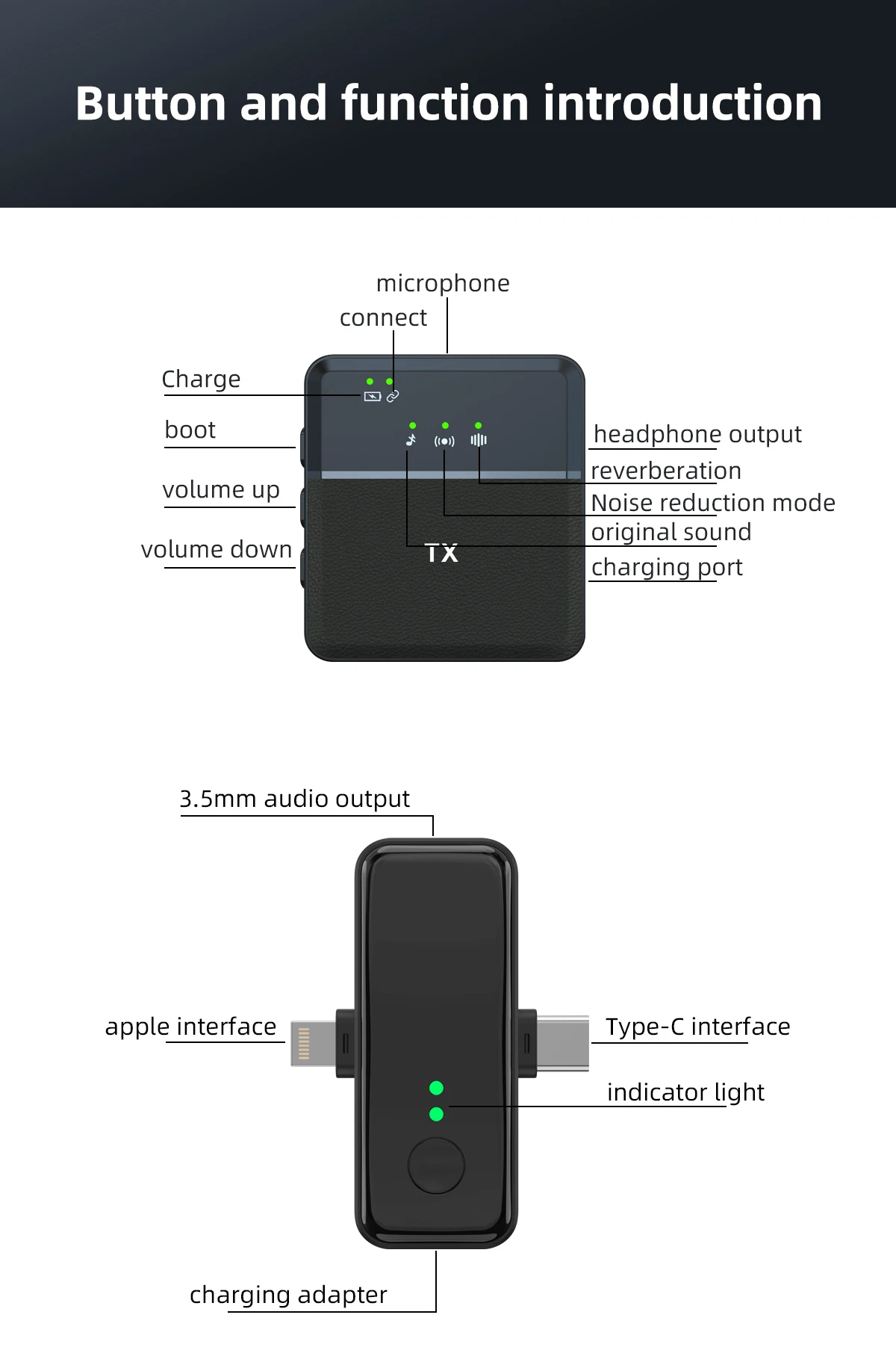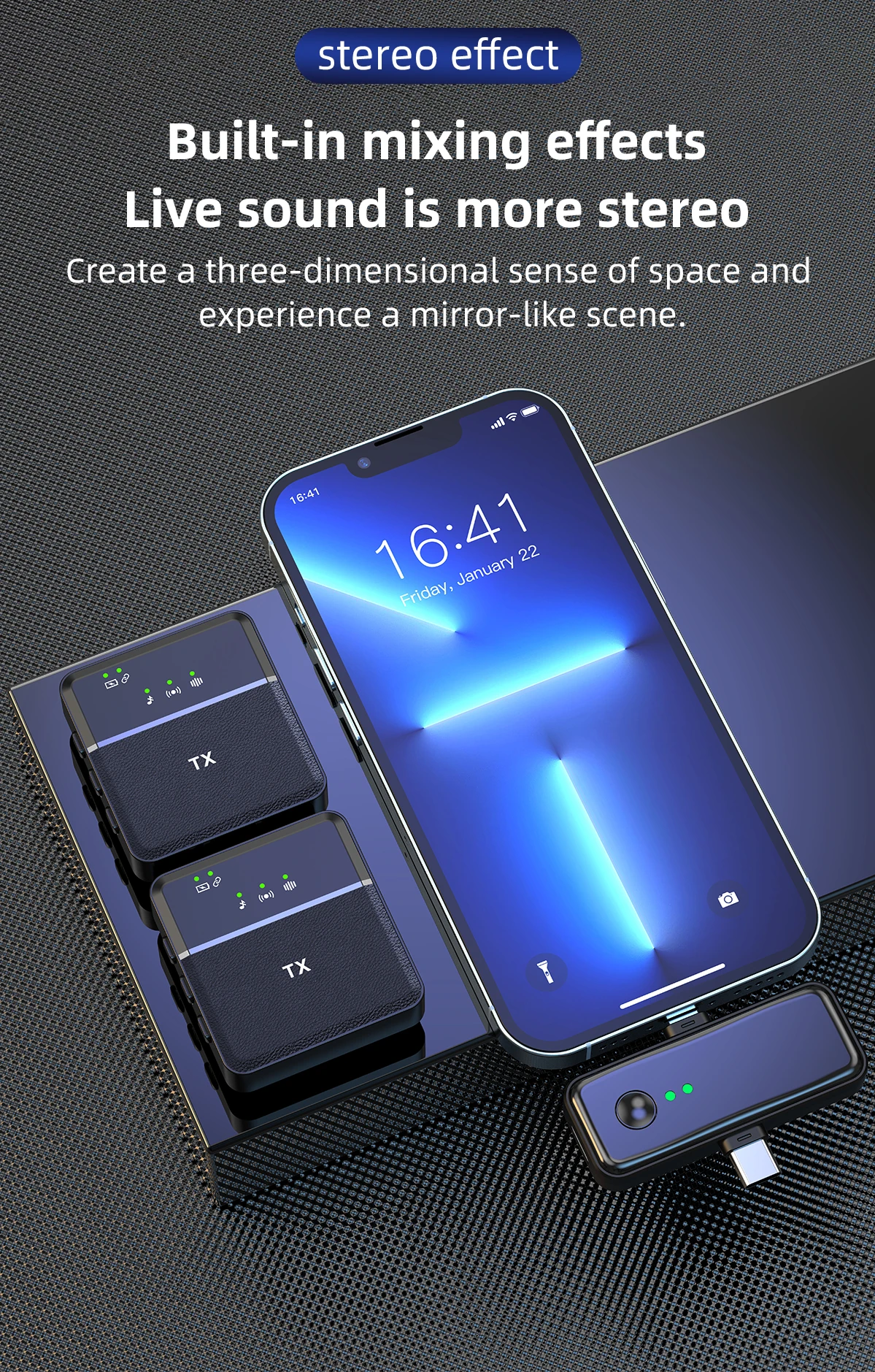 | Technologie | Type / Communication | Microphone lavalier sans fil | Wireless microphone haute liberté. |