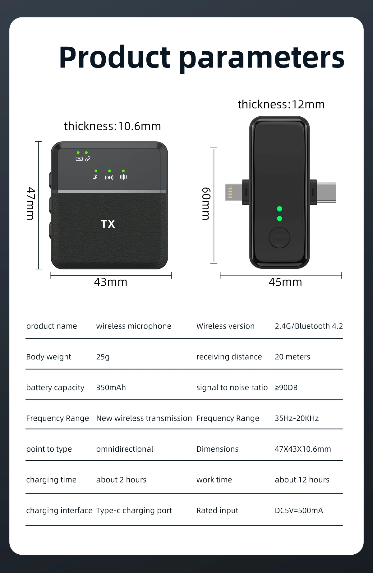 | Qualité Son | Sensibilité / SNR | -42DB / 64DBM | Équilibre parfait pour le CHANTER. |