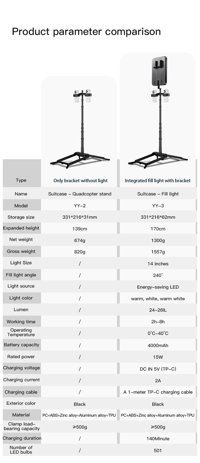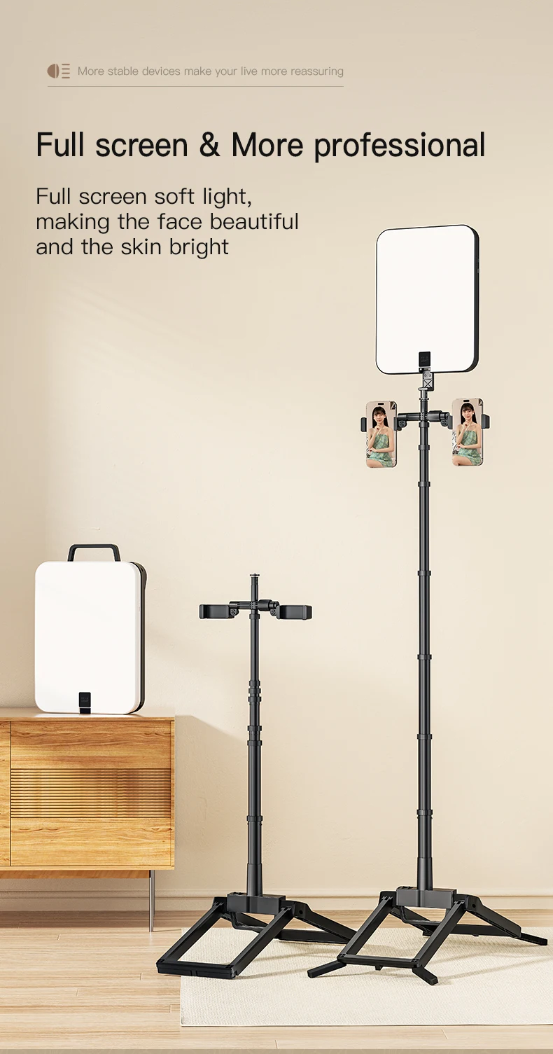 | Température | 2700-6500K (Réglable) | Matériel : ABS et Métal | Support Téléphone : 2 supports inclus |