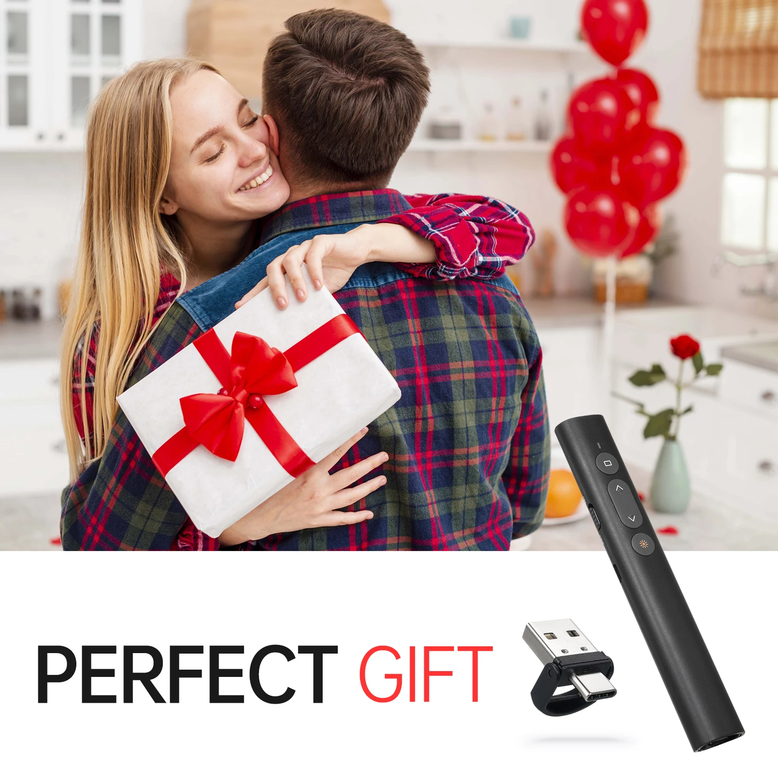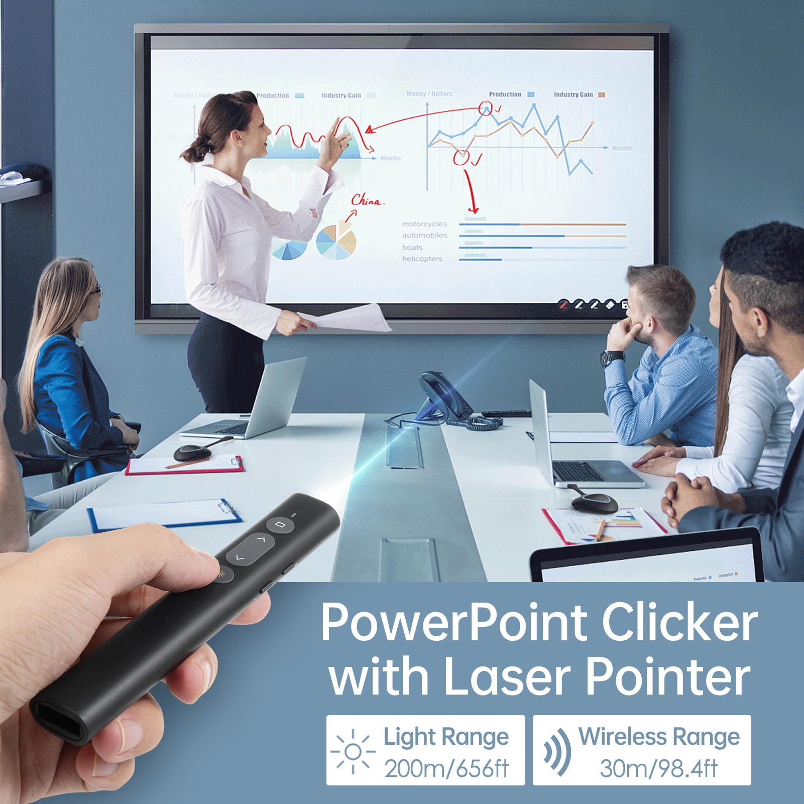 [Distance étendue de la télécommande]-Avec une distance de contrôle à distance allant jusqu'à 30m/98.4ft et une distance de lumière rouge de 200m/656ft, cette télécommande de présentateur sans fil vous permet de vous déplacer librement dans la pièce pendant votre présentation, soulignant les points clés avec facilité.