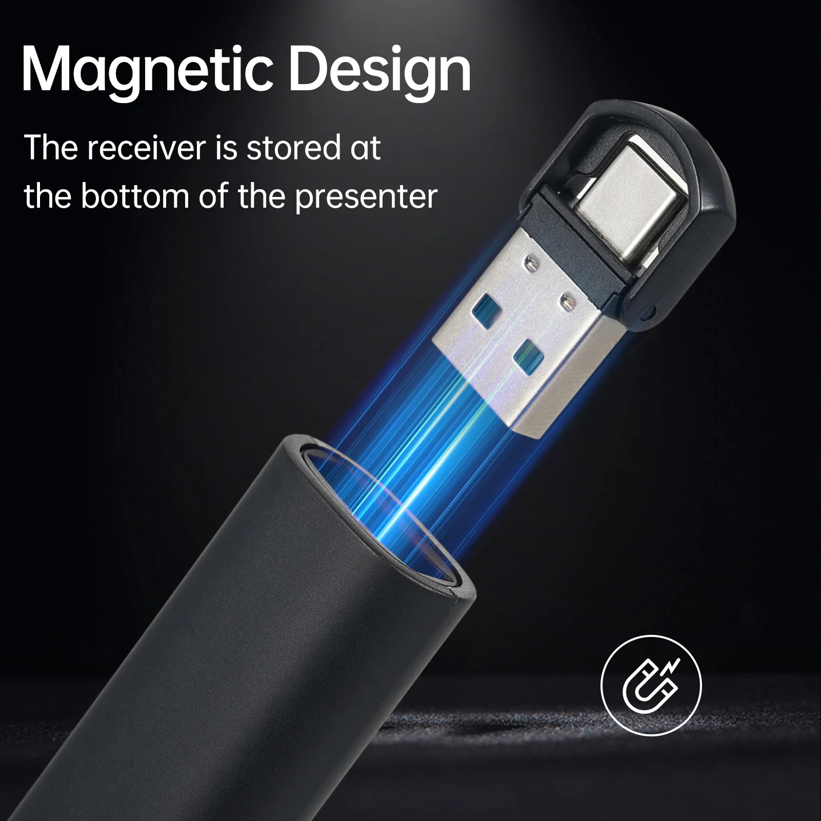 [Récepteur USB/Type C à double interface]-Le récepteur de ce stylo de présentation dispose d'interfaces USB et Type-C, ce qui le rend adapté à une large gamme d'appareils. Branchez-le simplement et démarrez votre présentation sans avoir besoin de pilotes.