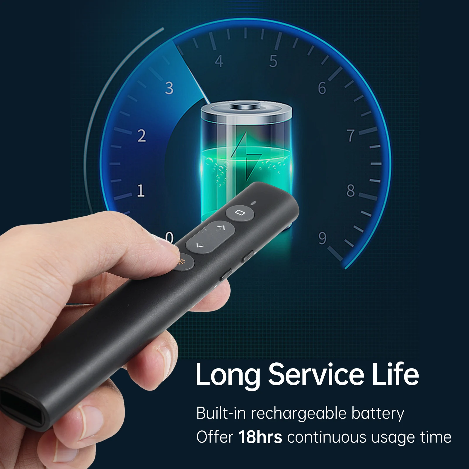 [Longue durée de vie de la batterie]-Ce cliqueur de présentation est équipé d'une batterie au lithium intégrée, offrant une durée d'utilisation continue de 18 heures, ce qui garantit que vos présentations peuvent se poursuivre sans interruption en raison de la faible puissance de la batterie.