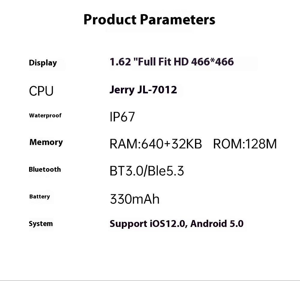 | Écran | Taille et Résolution | 1.53 pouce / 320x240 | Type : TFT (Rond) |
