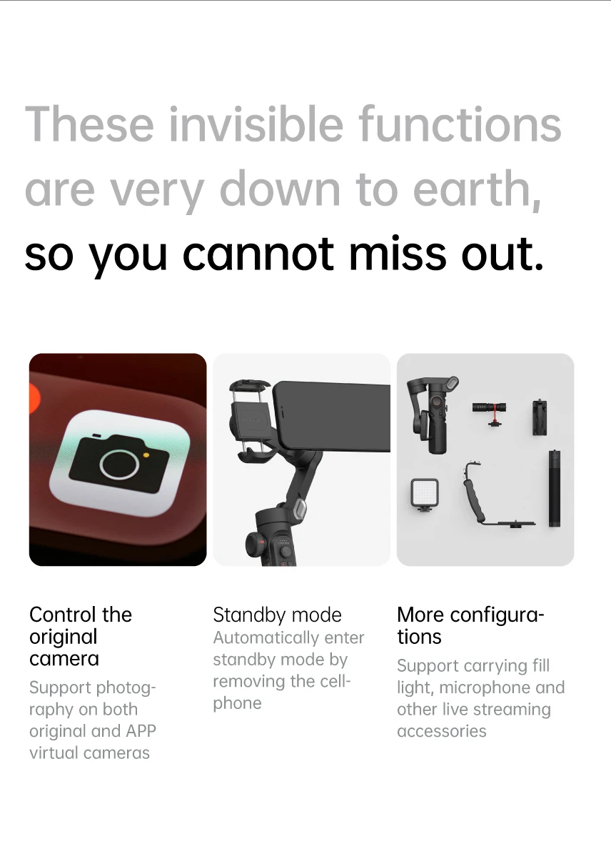 3 axes améliorés, conception sans verrouillage, profitez de la prise de vue instantanément