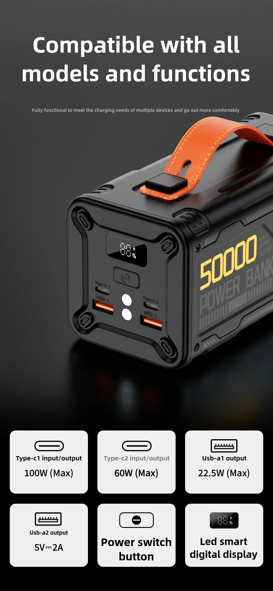 | Type | Imperméable, Charge rapide, Haute Capacité, Portable, Centrale électrique, 2 en 1 chargeur rapide batterie externe, Pour extérieur, Centrale électrique portative, Banque portative universelle de puissance d'USB |