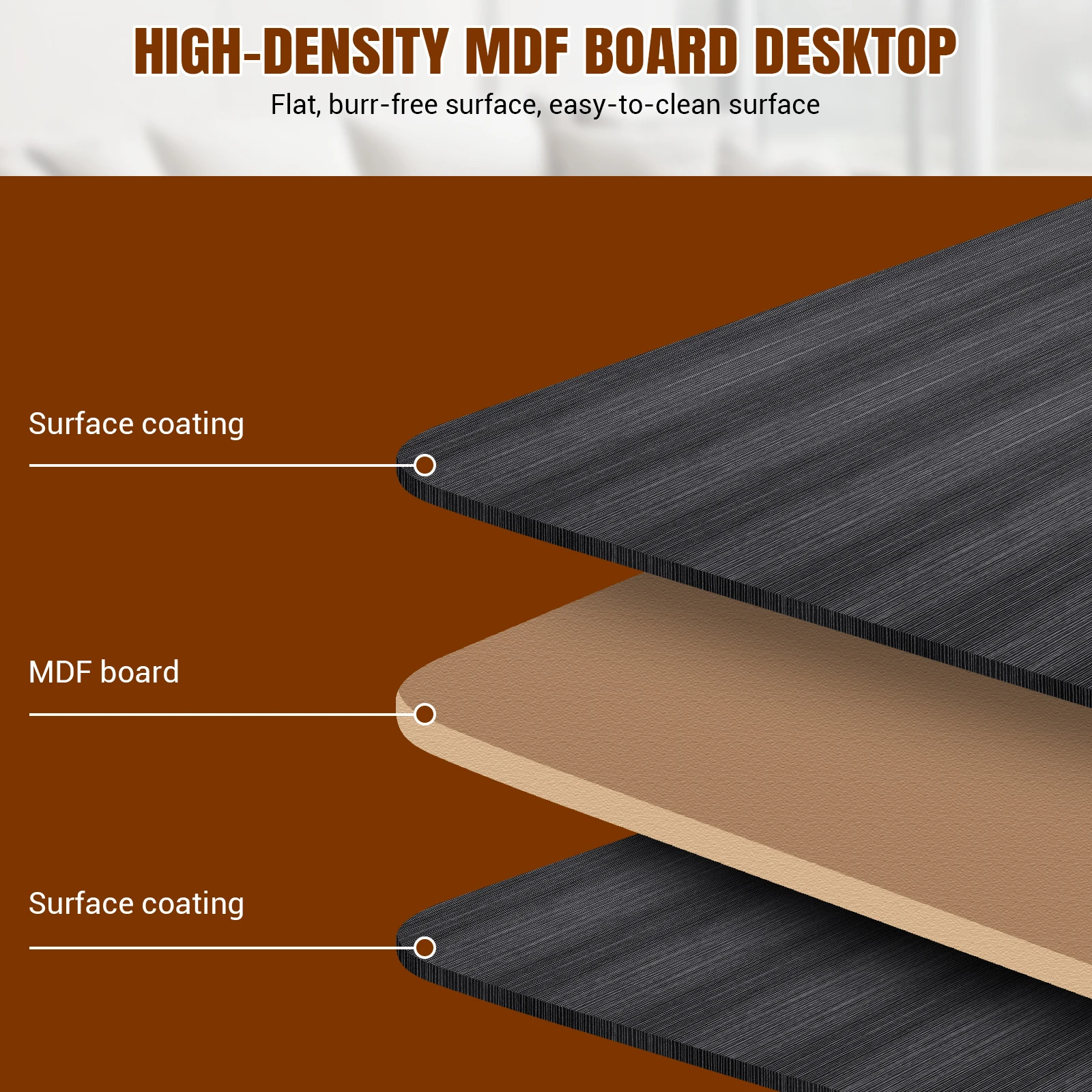 ?MATÉRIAU DE HAUTE QUALITÉ?Le bureau est en MDF, panneaux de particules de bois massif, sûrs et respectueux de l'environnement.Les pieds sont en tube en alliage d'aluminium.La surface est lisse, non toxique, difficile à étirer, les matériaux résistants à l'humidité, aux rayures et aux hautes températures sont réels, épais et de structure raisonnable.