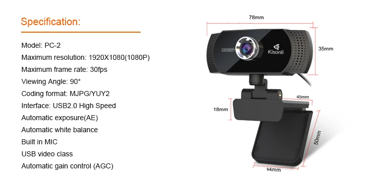 Fonctionnalités | Conception : Webcam de caméra de PC USB |