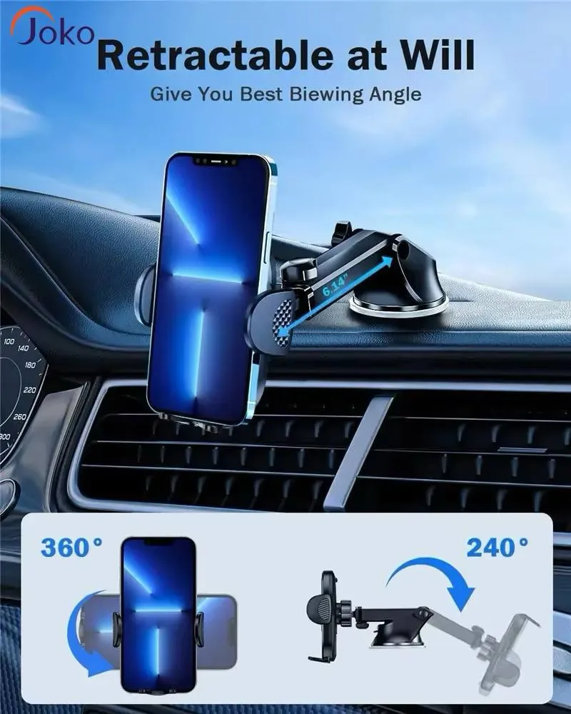 Système de Serrage Sécurisé : Les bras latéraux sont équipés de protections en silicone pour maintenir fermement le téléphone tout en évitant les rayures sur le châssis de l'appareil.