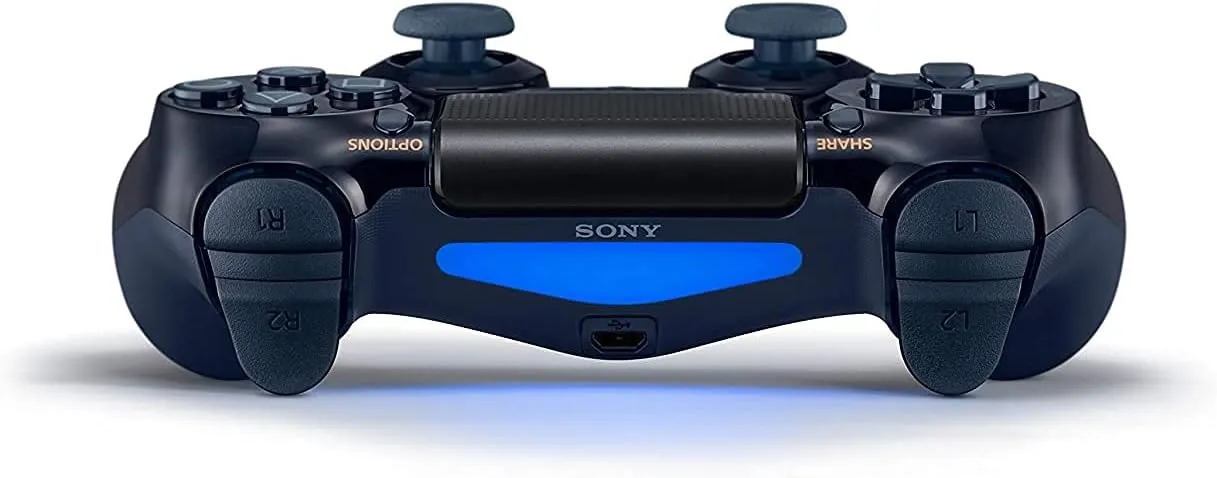 Il s'agit de la Manette Sans Fil Sony DualShock 4 Édition Limitée 500 Millions. Sa caractéristique principale est son design collector : une coque extérieure transparente bleu foncé (translucide) permettant de voir les circuits internes, associée à des logos et des gâchettes de couleur cuivrée. Bien qu'elle soit proposée en Bulk Packaging (sans l'emballage de vente au détail d'origine), elle est neuve et officielle. Elle est entièrement compatible avec la console PlayStation 4 et les PC. C'est un contrôleur rare et recherché, alliant esthétisme unique et performance DualShock 4.