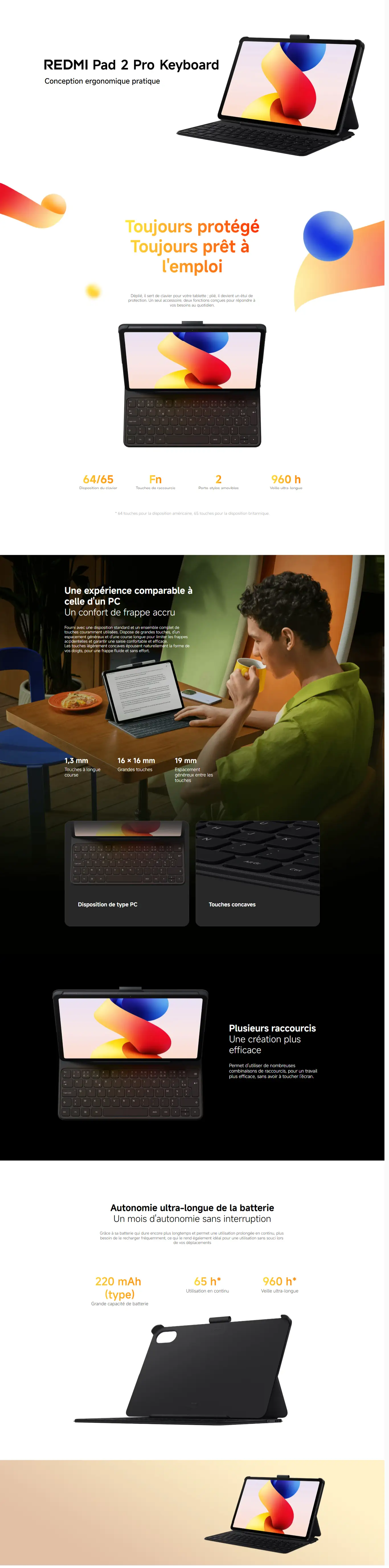 | Compatibilité | Modèles compatibles | REDMI Pad 2 Pro | Ajustement parfait et stabilité garantie. |